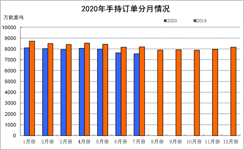 1~7月份,全国造船完工2003万载重吨,同比下降9.4%。承接新船订单1399万载重吨,同比下降4.8%。7月底,手持船舶订单7562万载重吨,同比下降7.7%,比2019年底下降7.4%。
