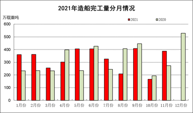 1-11月,我国造船完工量、新接订单量、手持订单量分别占世界市场份额的45.5%、53.3%和47.8%。