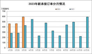 1-3月,48家重点监测造船企业造船完工896万载重吨,同比下降2.2%。承接新船订单1465万载重吨,同比增长45.1%。3月底,手持船舶订单11092万载重吨,同比增长14.8%。