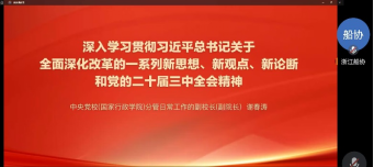 为深入学习贯彻党的二十届三中全会精神,进一步推动理论学习向纵深发展。11月25日,浦沿街道党工委组织线上学习培训课程。中共浙江省船舶行业协会支部委员会及其他社会组织的三十余名党员齐聚云端,共同参与学习。